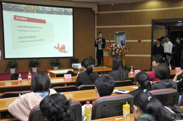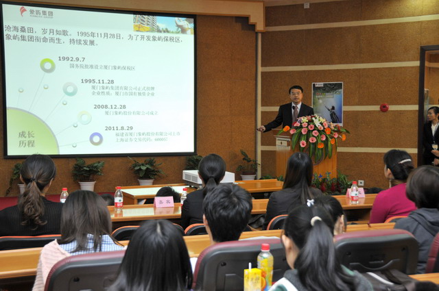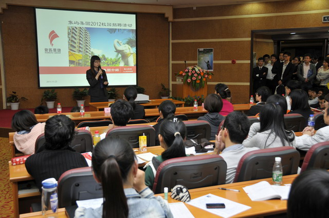 2012年象嶼集團全國校園招聘首場宣講會于11月23日晚在廈門大學拉開帷幕。集團人力資源總監(jiān)林志勇、象嶼股份人力資源部經(jīng)理林焱為同學們進行了精彩的宣講并回答了同學們現(xiàn)場的提問,鼓勵廈大的優(yōu)秀學子們加入到象嶼的大家庭。據(jù)悉,此次宣講會吸引了近500位應屆生參加,場面火爆,提問環(huán)節(jié)積極踴躍,會后現(xiàn)場收到簡歷近500 份。