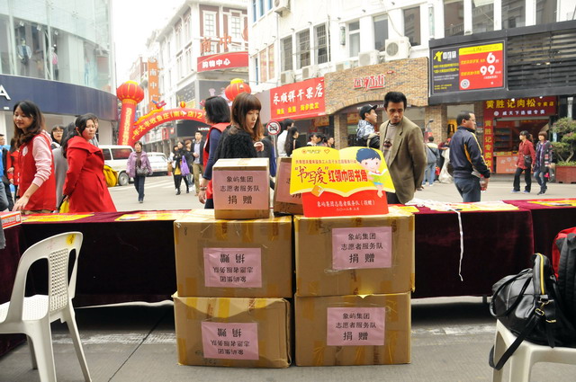 3月4日下午,在中山路步行街的活動現(xiàn)場,集團(tuán)的志愿者們將整理好的六大箱愛心圖書贈送給了來廈務(wù)工人員子弟學(xué)校,并參加了現(xiàn)場的“書寫愛”漂流書勸募活動,向社會傳遞我們象嶼人的公益和愛心。