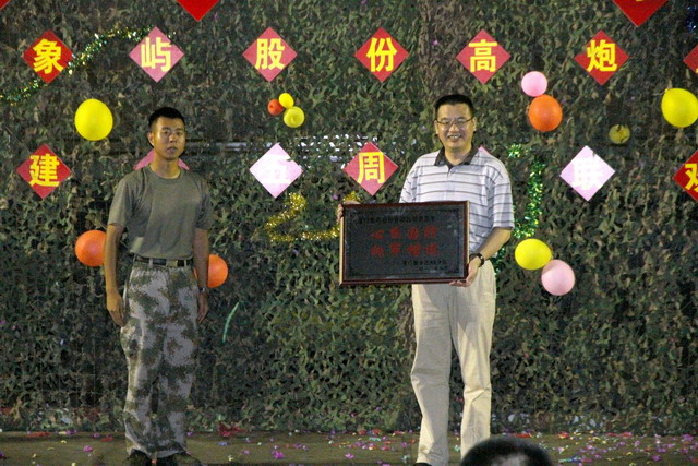 經(jīng)過(guò)一場(chǎng)緊張激烈的籃球友誼賽后,晚會(huì)正式開(kāi)始。鄧啟東總經(jīng)理代表公司向三連贈(zèng)送了慰問(wèn)品,高炮三連指導(dǎo)員發(fā)表講話提出三連在象嶼股份的攜手同行中部隊(duì)現(xiàn)代化建設(shè)得到持續(xù)發(fā)展,同時(shí)感謝公司多年的支持并回贈(zèng)“心系國(guó)防,擁軍模范”牌匾。象嶼股份黨總支副書(shū)記湯開(kāi)宏同志回顧了雙方共建十五年的歷史并總結(jié)共建以來(lái)象嶼股份在高炮三連敢打敢拼精神的鼓舞、帶動(dòng)下的不斷發(fā)展壯大,最后對(duì)共建關(guān)系提出美好希冀,期望雙方在繼續(xù)共建中不斷共同促進(jìn)。
